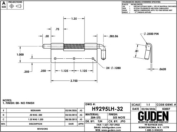 9294-32SPR Latch Hinge Component
