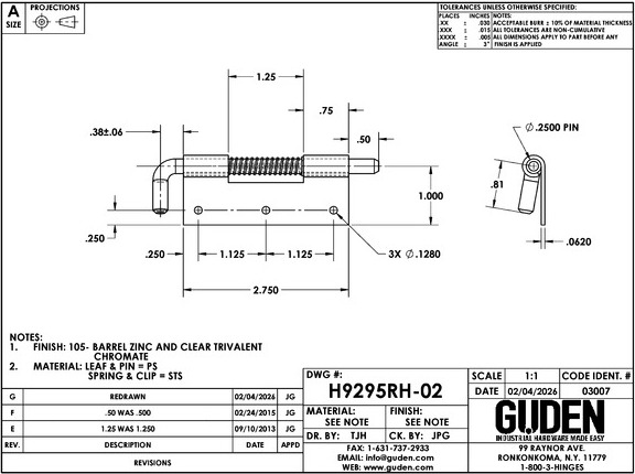 9295-32SPR Latch Hinge Component