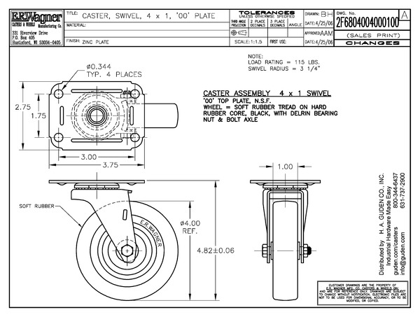 Caster 4x1 PLSW Zinc