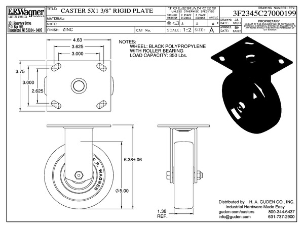 Caster 5x1-3/8 PLRG Zn