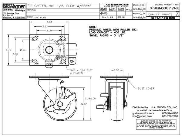 Caster 4x1-1/2 PLSW Zinc BK
