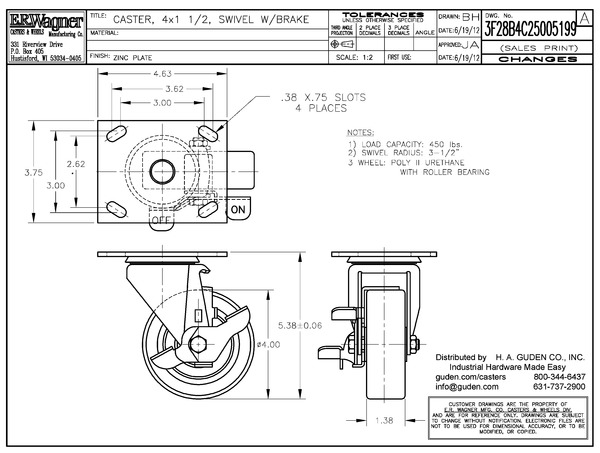 Caster 4x1-1/2 PLSW Zinc BK