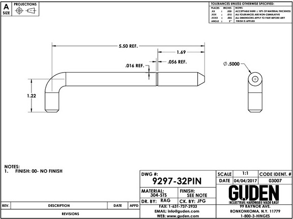 9297-32PIN 9297 LATCH HINGE, PIN ONLY