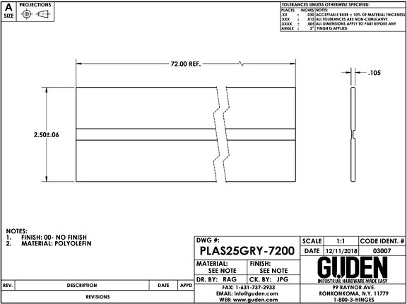PLAS25GRY-7200 PLASTIC 2.50" WIDE X 72" LONG